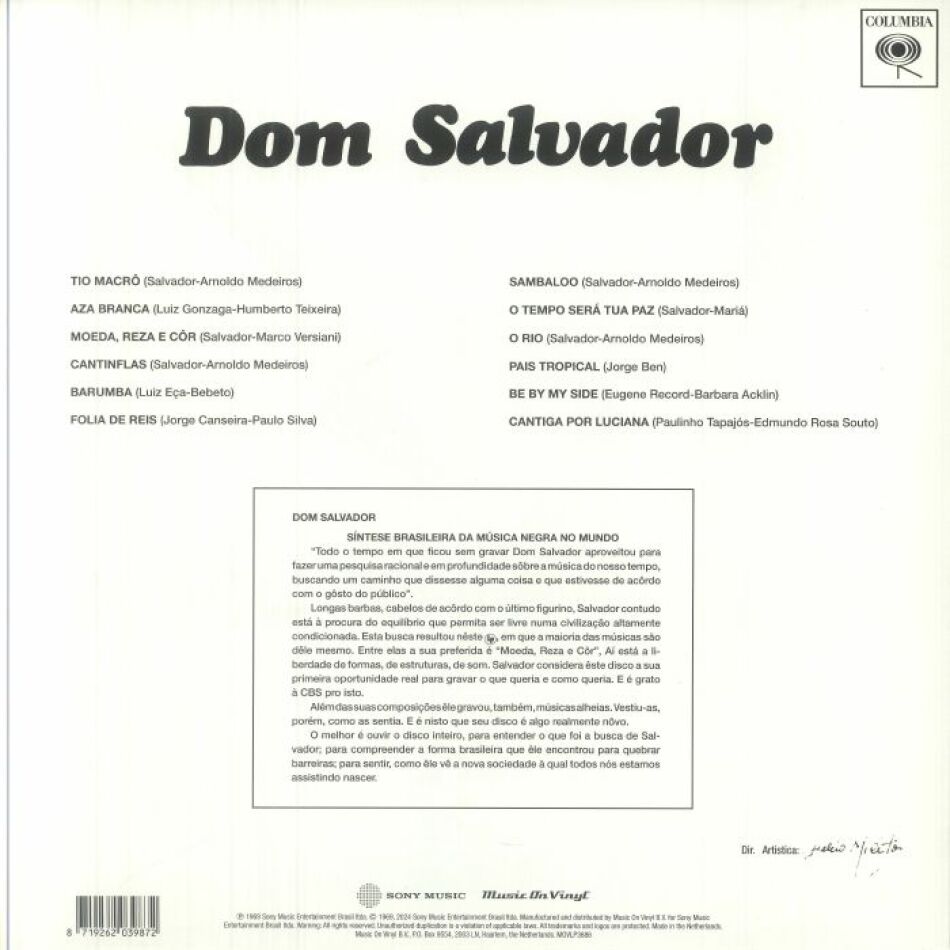 Dom Salvador, Dom Salvador, released in 1969, is a landmark album by Brazilian pianist and composer Dom Salvador. This instrumental jazz record showcases Salvador's mastery of blending Brazilian rhythms with American jazz influences. The album features a mix of samba, bossa nova, and hard bop, highlighting Salvador's innovative approach and technical prowess.